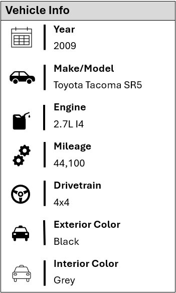 If you’ve ever wished you could find an older Tacoma with extremely low miles, this is the one. This 2009 Toyota Tacoma SR5 Access Cab 4×4 has just 44,100 original miles and has been well cared for since day one. It drives like new and is ready for many more years of reliable service.